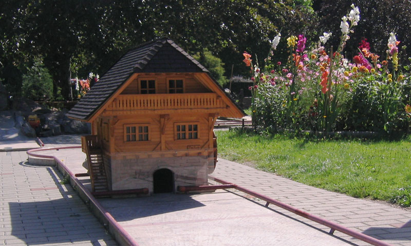Ein typisches Schwarzwaldhaus mit Walmdach und Sprossenfenstern eröffnet den Parcours aus 12 Bahnen. Gebaut wurde dieses Schmuckstück in liebevoller Kleinarbeit von ???